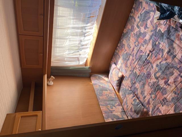 Cama doble 2 + 2, refrigerado, cocina de gas, fregadero, zona de estar, toldo cerrado, calefacción, baño.